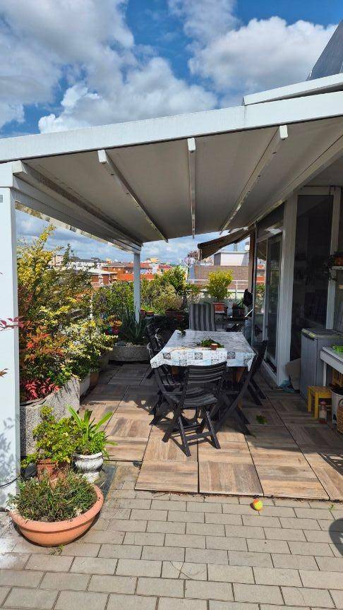 VIALE CASIRAGHI/VIA CAMPARI all'interno di uno stabile signorile, con portineria e ascensore che accede direttamente all'interno dell'appartamento, proponiamo in vendita ESCLUSIVO attico, posto al sesto piano,di circa 110 mq con splendida terrazza al piano di circa 210 mq.