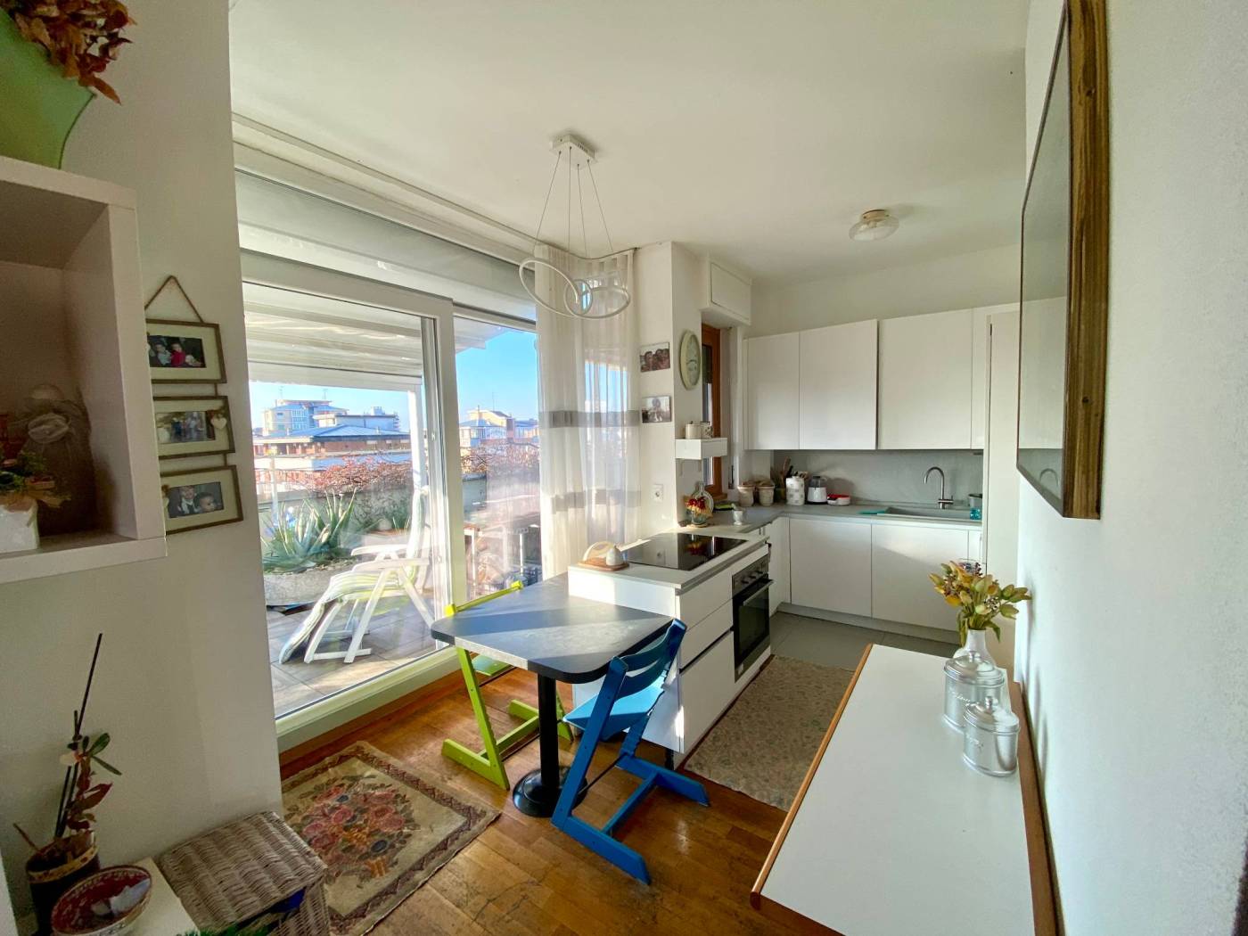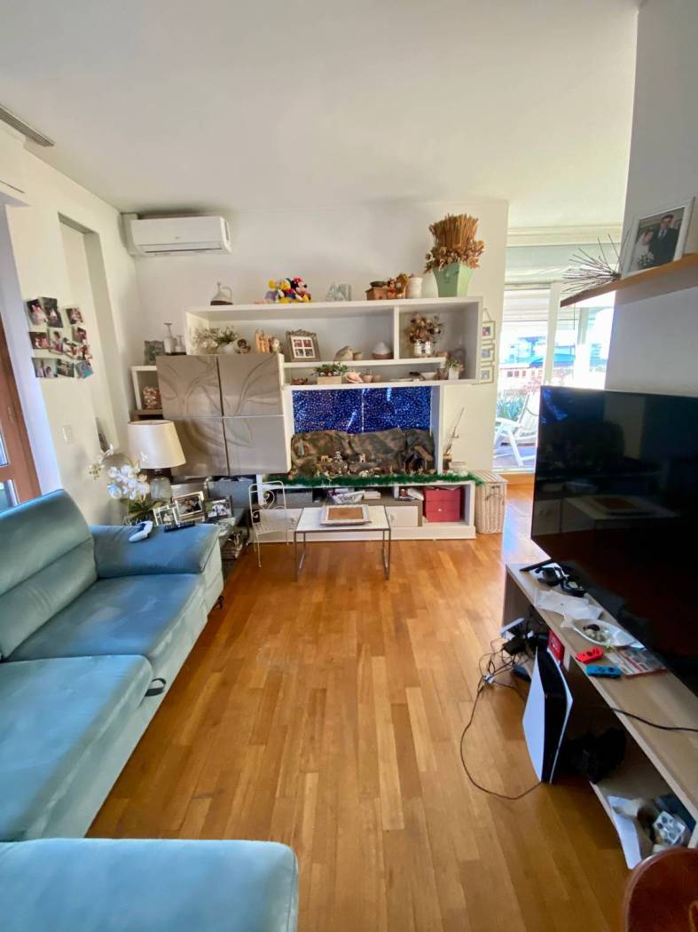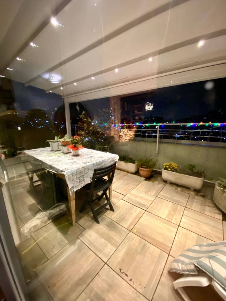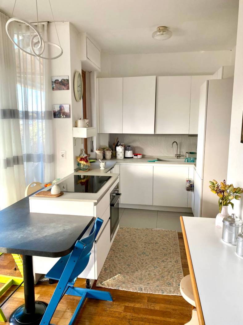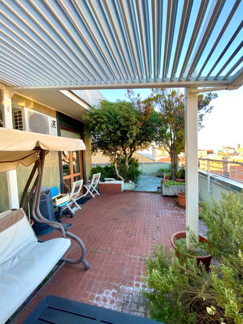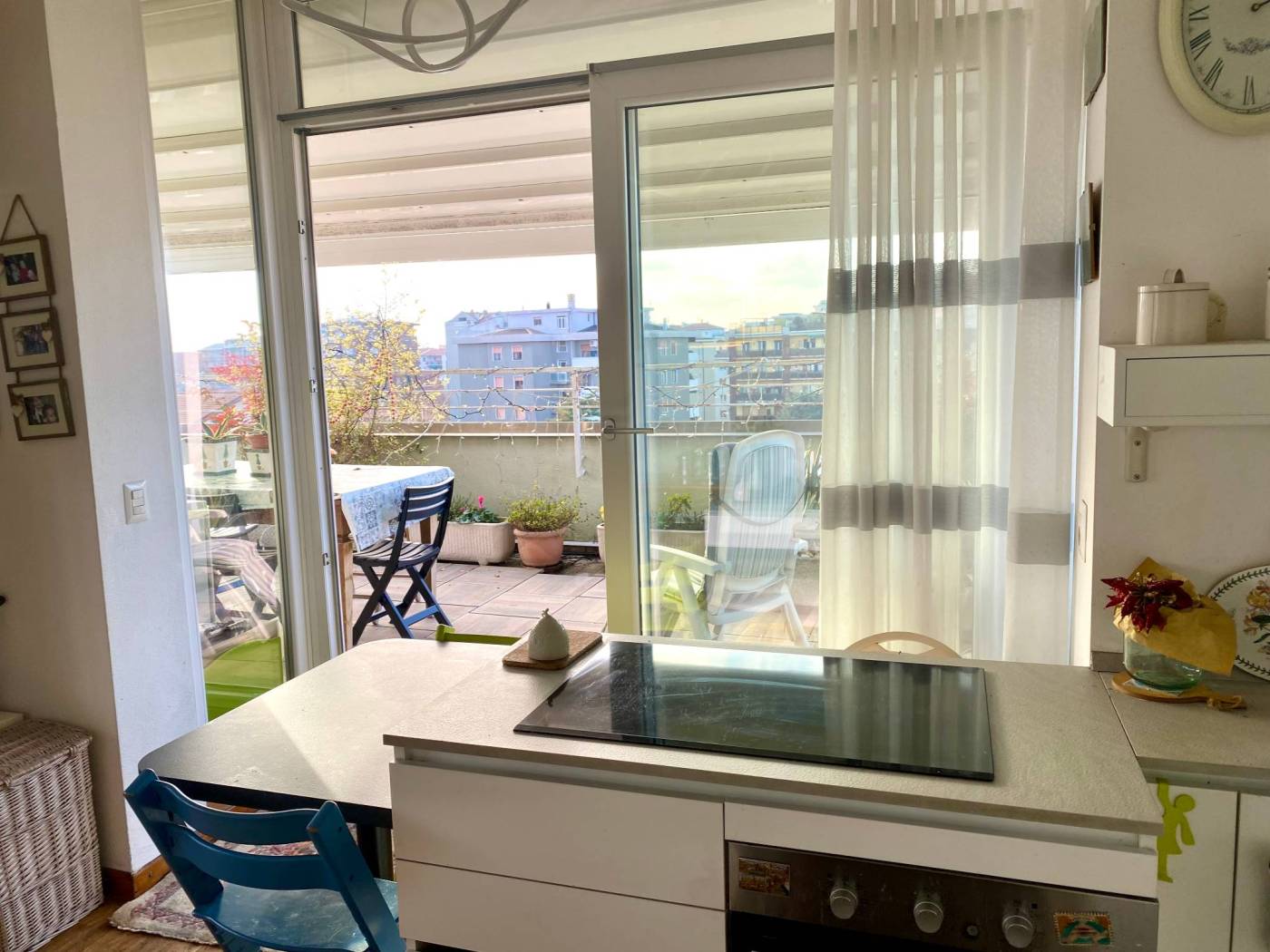 L'appartamento è composto da ingresso, soggiorno con accesso diretto alla terrazza panoramica creando una perfetta continuità tra spazi interni ed esterni, cucina a vista, tre camere, studio, doppi servizi, ripostiglio e cantina.